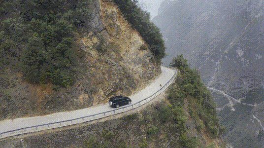 唯一的山路镶嵌在悬崖上
