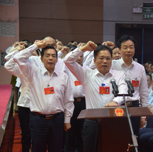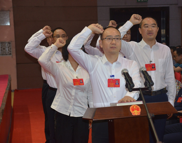 根据《全国人民代表大会常务委员会关于实行宪法宣誓制度的决定》和《渠县人民代表大会常务委员会关于实施宪法宣誓制度的决定》,会上,新当选的县十八届人大常委会主任、副主任、委员,县人民政府县长、副县长,县人民法院院长,进行了宪法宣誓。