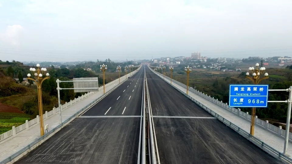 小爱来到国道318线与工业园区集贤路交汇处,一条宽阔、平直的大道直连新建的渠县火车站站前广场,这就是火车站快速通道。路线全长1.27公里,一级公路,双向6车道,设计时速60公里/小时,设特大桥一座(腾龙高架桥),桥长968米,目前该项目已完工。