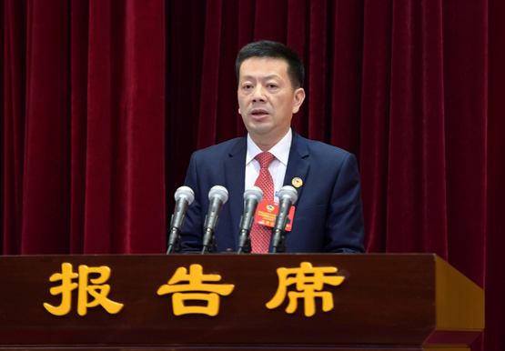 县政协主席李佳林代表政协渠县第十四届委员会常务委员会向大会报告工作。