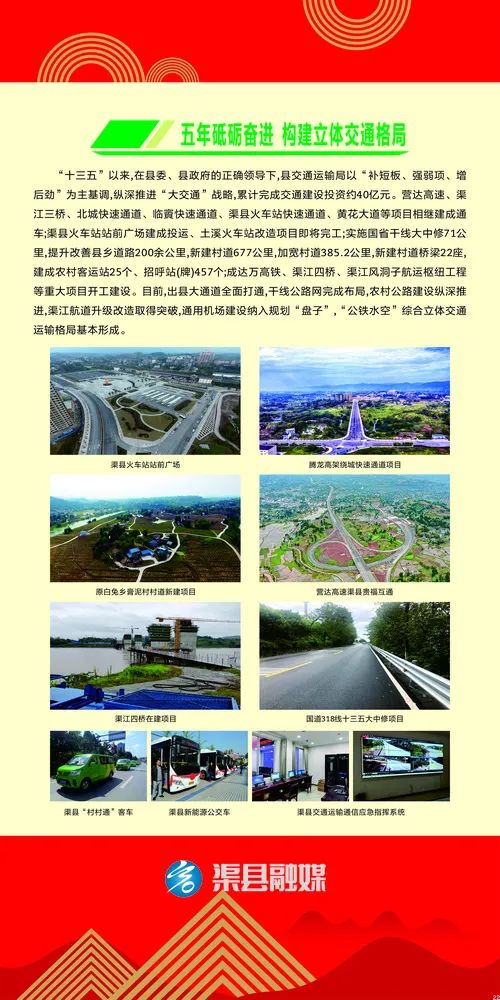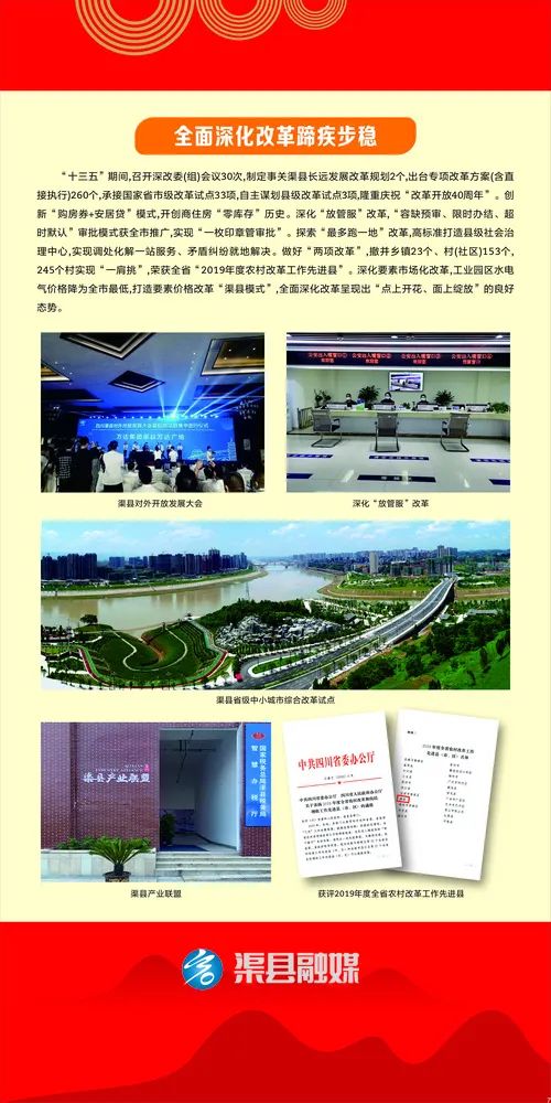 时序更替,转眼经年。回眸“十三五”,是攻坚克难、锐意进取的五年,是奋发有为、跨越发展的五年,渠县各级党组织和党员干部团结一心谋发展、凝心聚力为民生、与时俱进创辉煌,一步一个脚印,在渠县现代化建设的大道上迈出了坚实的步伐。
