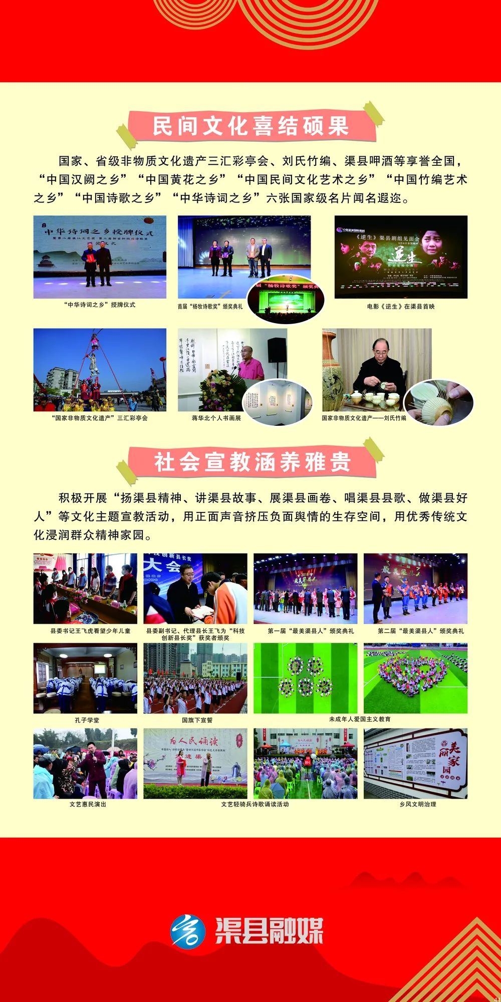 过去五年,渠县以改革引领发展、以创新凝聚力量、以实干笃定前行,摘得累累硕果。本次展览,用镜头定格下的一个个瞬间,从不同角度、不同层面、不同维度,展现了改革发展的辉煌成就,唱响了砥砺奋进的时代凯歌,绘就了富民强县的美好画卷。凡是过往、皆为序章,新征程催生新使命,新蓝图激励新担当,让我们重整行装、策马扬鞭、再攀高峰,为加快实现“一区三地一城”新定位、建设“特富美安”新渠县贡献自己的一份力量!
