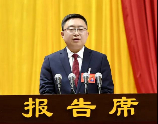 代理县长王飞代表渠县第十八届人民政府向大会作政府工作报告。