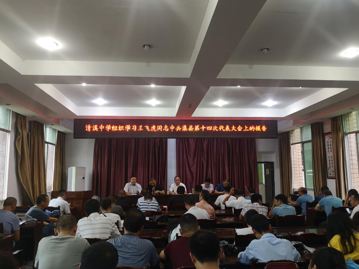 渠县清溪中学组织学习王飞虎同志在中共渠县第十四次代表大会上的报告