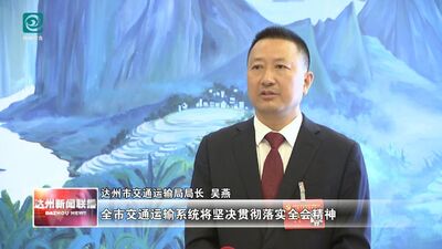 达州市交通运输局局长 吴燕:全市交通运输系统将坚决贯彻落实全会精神,勇争一流,深入实施交通运输常态化提质提升行动,推进高速公路“千亿工程”,建成镇广、大垫、绕西3条高速公路,开工建设城宣大邻渝、南大等高速公路,实施八台山至巴山大峡谷等旅游快速通道,推动交通与旅游业深度融合发展,为打响“巴风賨韵·安逸达州”文旅品牌,作出我们达州交通新的更大的贡献。