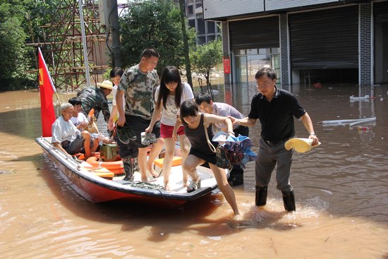 渠县李渡乡党员先锋突击队转移群众(庞莹 摄)