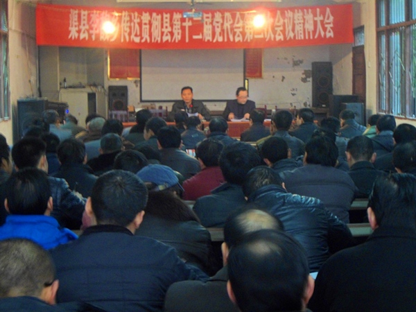 会上,党委书记何文重点传达了县委书记、县人大常委会主任王善平代表县委所做的工作报告和县委常委、纪委书记马军代表县纪委所作的工作报告。何文指出,县第十二届二次党代会是在深入学习宣传贯彻党的十八大精神之际召开的重要会议,是在我县追赶跨越、加快发展的关键时刻召开的重要会议,是全县人民政治生活中的一件大事。