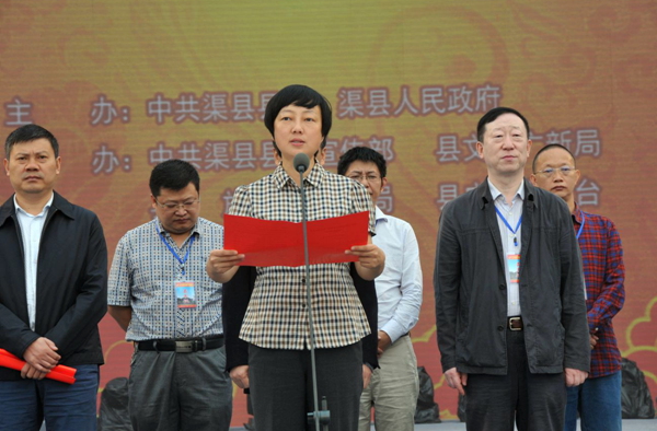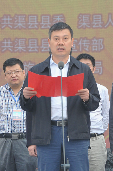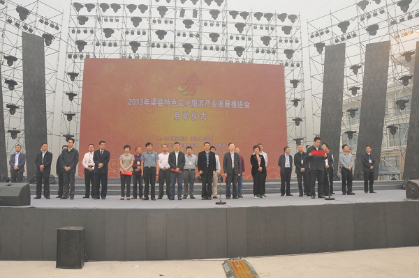 上午9时许,在一片锣鼓声中,胥健宣布2013年渠县特色文化旅游产业发展推进会正式启动。