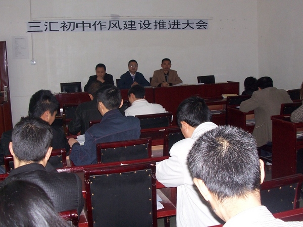 4月10日下午,三汇初级中学召开全体教职工作风建设大会,切实推进作风建设。