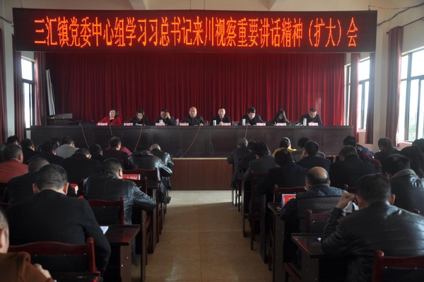 3月9日,三汇镇党委召开党委中心组学习贯彻习近平总书记来川视察重要讲话精神(扩大)会。镇党委书记王兴、镇长曾涛出席会议。