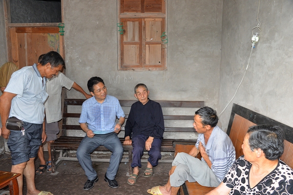 在三板乡福城村七组,检查组首先走访了解村民对国家脱贫攻坚政策的认识程度,以及该村脱贫攻坚工作开展的实际情况。随后,检查组一行来到村支部委员会,了解贫困户建档立卡详细情况、脱贫规划和产业发展状况。何世斌认真查阅精准扶贫到户明白卡,详细了解建卡贫困户是否精准,有无错漏,并随机来到贫困户何思文家中,了解家庭生产生活状况,在得知他是因为身患多种重病,丧失劳动能力导致贫困时,他当即责成村干部积极与帮扶部门沟通协调,针对实际困难拟定具体管用帮扶措施。何世斌指出,福城村脱贫攻坚工作值得肯定,付出了许多心血和努力,脱贫攻坚工作一定要秉承“扶真贫、真扶贫”的务实态度,精准扶贫对象、找准扶贫对策,切实打赢脱贫奔康攻坚战,建设幸福美丽新渠县。