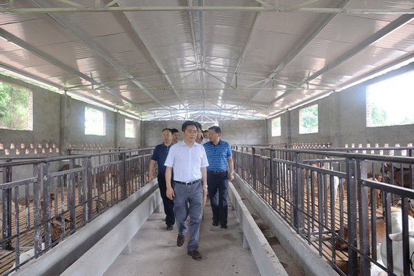 调研组来到渠县追梦山羊养殖农民专业合作社,详细了解其养殖场的圈舍、蓄水池和沼气池的修建情况以及当前合作社发展所遇到的困难。何世斌向三板乡党委、大雾村党支部传达了县委书记苟小莉对脱贫攻坚工作的要求和指示,并听取了乡党委和村党支部对第二季度现场会精神的贯彻落实情况。