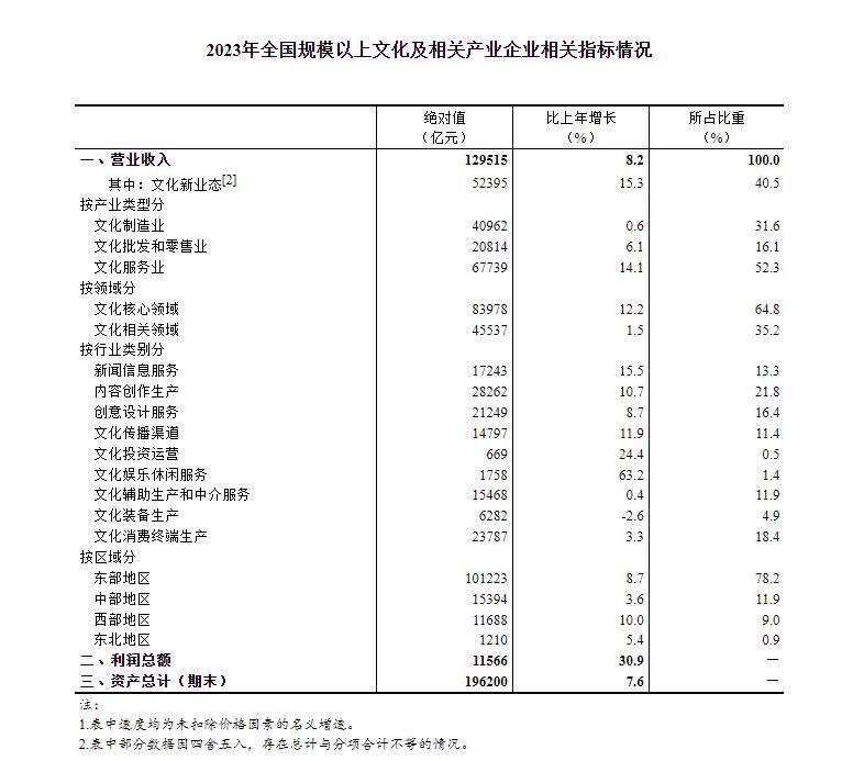 国家统计局:2023年全国规模以上文化及相关产业企业营业收入增长8.2%