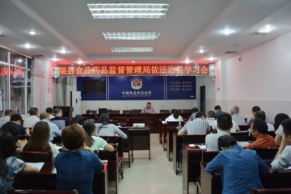 5月17日,渠县食品药品监督管理局召开依法治县学习会,传达贯彻省市依法治县会议精神。局机关全体干部职工参加会议。