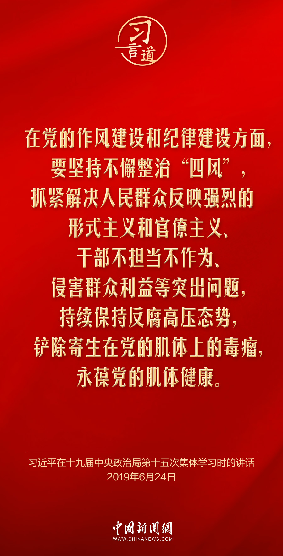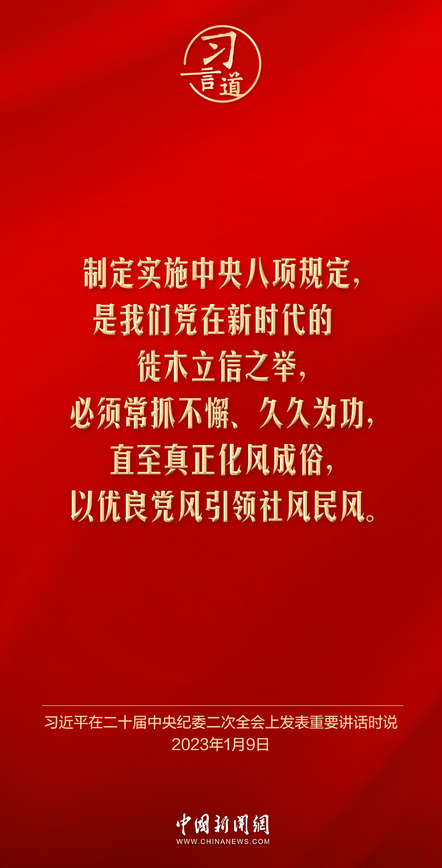 习言道|把中央八项规定作为铁规矩、硬杠杠 字体:大 小 打印 关闭本页 作者: 来源:中国新闻网 发布时间:2025-03-17 19:42:18 点击数: 党中央决定,自2025年全国两会后至7月在全党开展深入贯彻中央八项规定精神学习教育。党的作风就是党的形象,关系人心向背,决定党和国家事业成败。习近平总书记高度重视作风建设,就贯彻落实中央八项规定精神、深化作风建设作出一系列重要论述—— 分享 分享到: